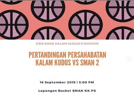 SMA KRISTEN KALAM KUDUS PEMTANGSIANTAR melalui OSIS mengadakan pertandingan persahabatan (friendly match) basket (putra dan putri) antara SMA KALAM KUDUS melawan SMA NEGERI 2 pada Senin, 16 September 2019 di lapangan basket SMA Kalam Kudus Pematangsiantar. Pertandingan ini dilakukan sebagai persiapan tim basket kedua tim baik putra maupun putri yang akan mengikuti Metho Cup 2019 yan...