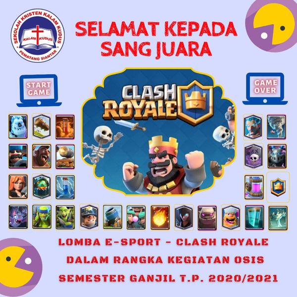 Dalam rangka mendukung program Classmeeting, OSIS SMA Kristen Kalam Kudus Pematangsiantar menyelenggarakan beberapa kegiatan selama semester ganjil dengan menggunakan media daring. Kegiatan keempat yang dilaksanakan yakni Lomba E-Sport (Clash Royale). Adapun tujuan dari lomba ini adalah mendorong setiap pemain untuk meningkatkan kemampuan kerjasama, kekompakan, pen...