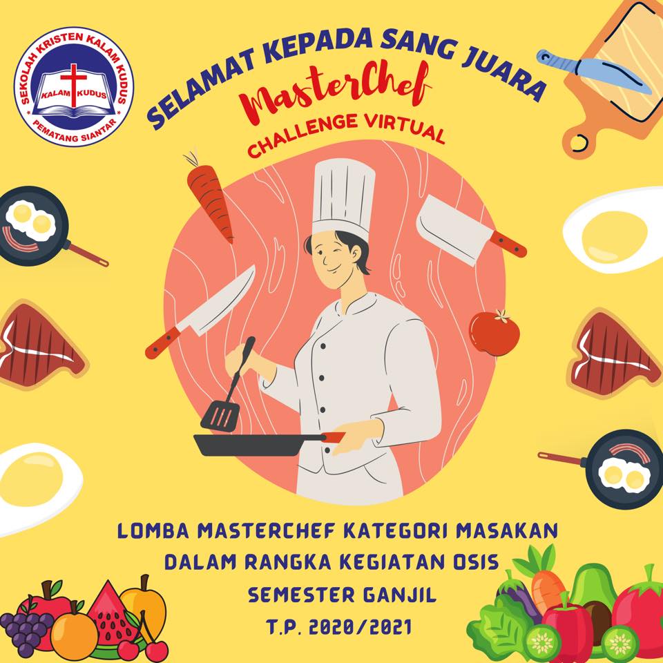 Dalam rangka mendukung program Classmeeting, OSIS SMA Kristen Kalam Kudus Pematangsiantar menyelenggarakan beberapa kegiatan selama semester ganjil dengan menggunakan media daring. Kegiatan kelima yang dilaksanakan yakni Lomba MasterChef. Adapun tujuan dari lomba ini adalah meningkatkan kreativitas, melatih kesabaran, manajemen waktu dengan baik, mengasah bakat dan keterampilan...