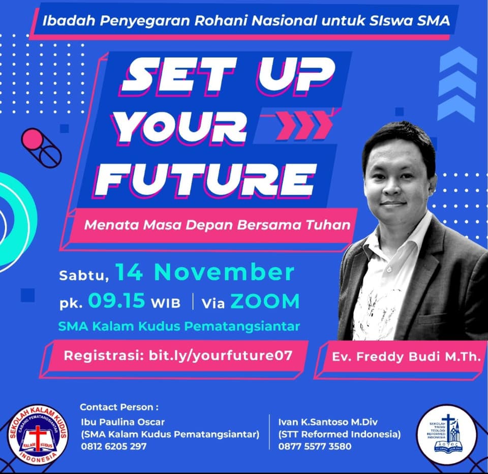 Setiap insan mengharapkan masa depan yang baik, sukses dan bahagia. Sehingga mereka menginvestasikan masa mudanya dengan belajar keras, bekerja keras demi meraih prestasi. Apakah dengan segudang prestasi menjamin kita memiliki masa depan yang cerah? badah Pembinaan Iman Kristen siswa SMA Kristen Kalam Kudus Pematangsiantar dengan tema "SET UP YOUR FUTURE NOW" akan mempersiapkan...
