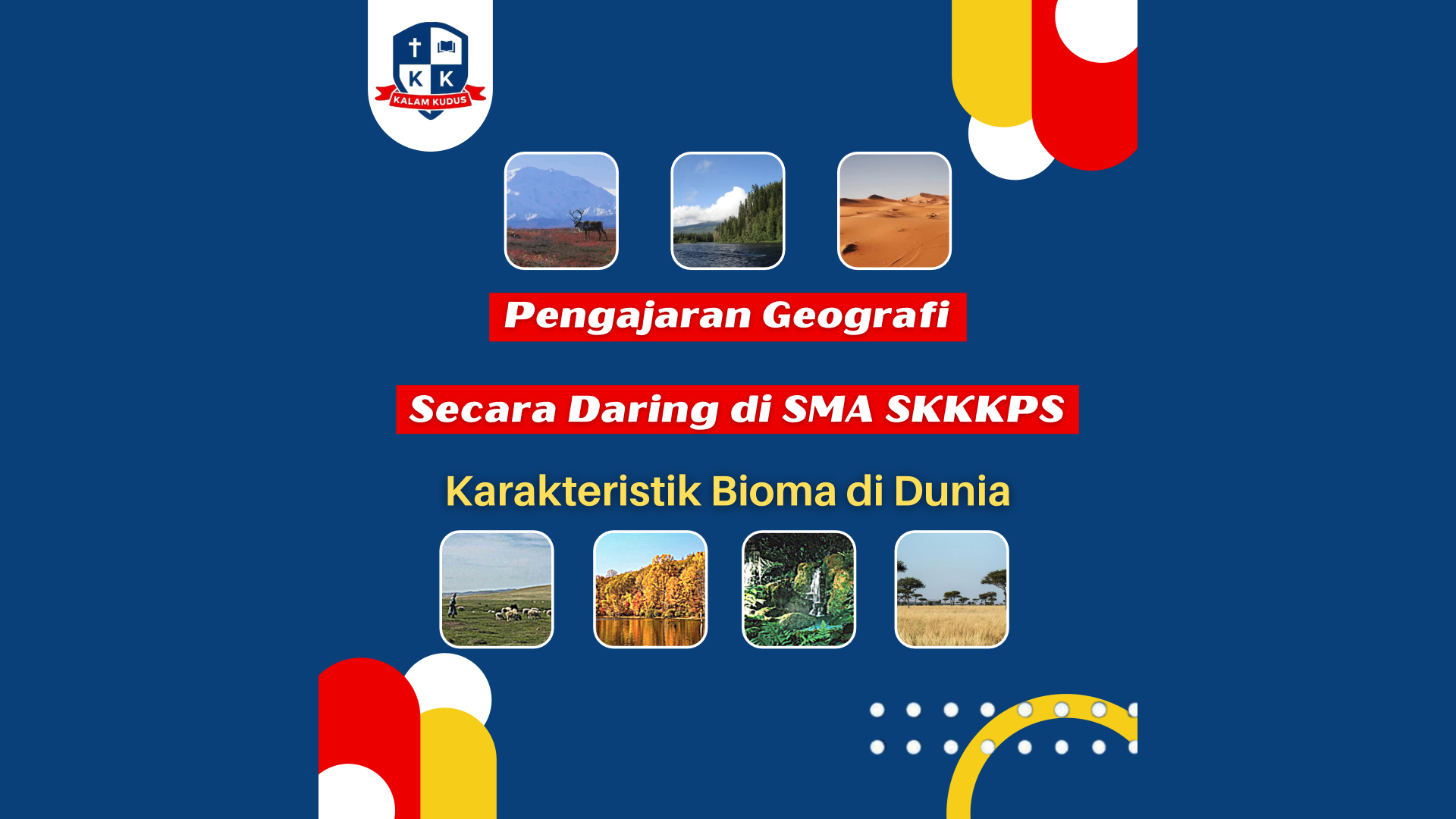 Ibu Arthama Bernita Hutasoit, S.Pd, salah seorang guru di SMA SKKKPS mengajarkan mata pelajaran Geografi tentang “Karakteristik Bioma di Dunia” kepada para siswa di kelas XI IPS. Bioma adalah unit atau sistem yang terdiri atas kumpulan flora dan fauna dengan kesamaan bentuk. Bioma terbentuk karena adanya perbedaan kondisi iklim dan letak geografis di suatu wilayah. &n...