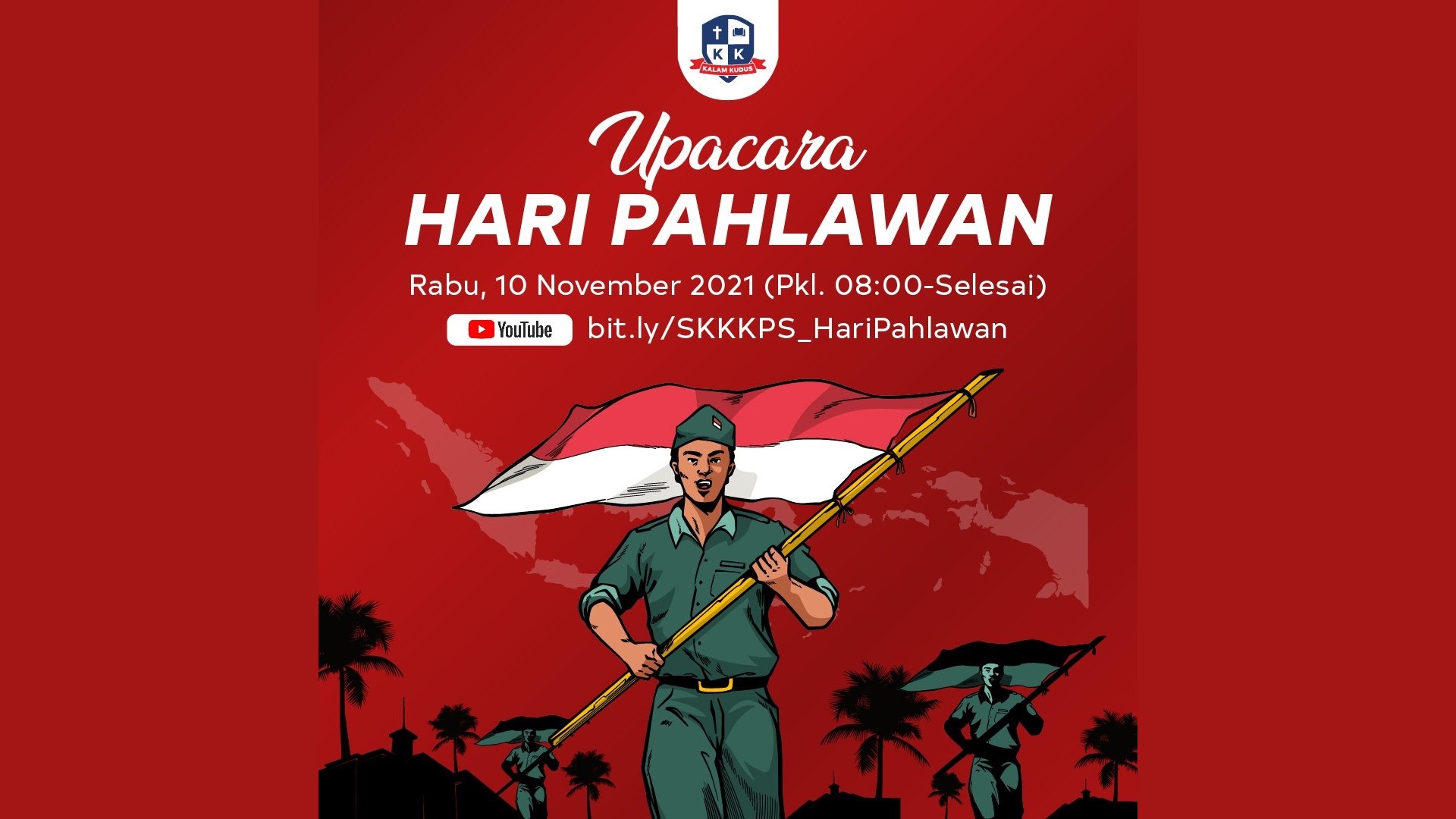 Dalam rangka memperingati Hari Pahlawan ke-76, seluruh guru, pegawai dan siswa SMA Kristen Kalam Kudus Pematangsiantar mengikuti upacara bendera secara virtual melalui YouTube channel Sekolah Kristen Kalam Kudus Pematangsiantar. Tema peringatan Hari Pahlawan tahun ini adalah PAHLAWANKU INSPIRASIKU. "Bangsa yang besar adalah bangsa yang menghormati jasa para pahlawann...