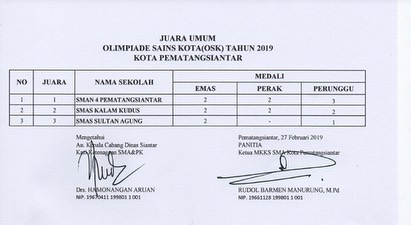 Congratulation to my students Puji Tuhan SMA Kalam Kudus Pematangsiantar meraih JUARA UMUM 2 Olimpiade Sains Kota Pematangsiantar. Terima kasih atas kerja keras bapak/ibu pembimbing dan ketekunan belajar anak - anak kami dalam persiapan OSK. Sungguh terbukti hasil tidak pernah mengkhianati usaha. Anak - anak kami, Ayo GO GO GO TO Olimpiade Sains Provinsi bulan April 2019. Soli Deo Gloria