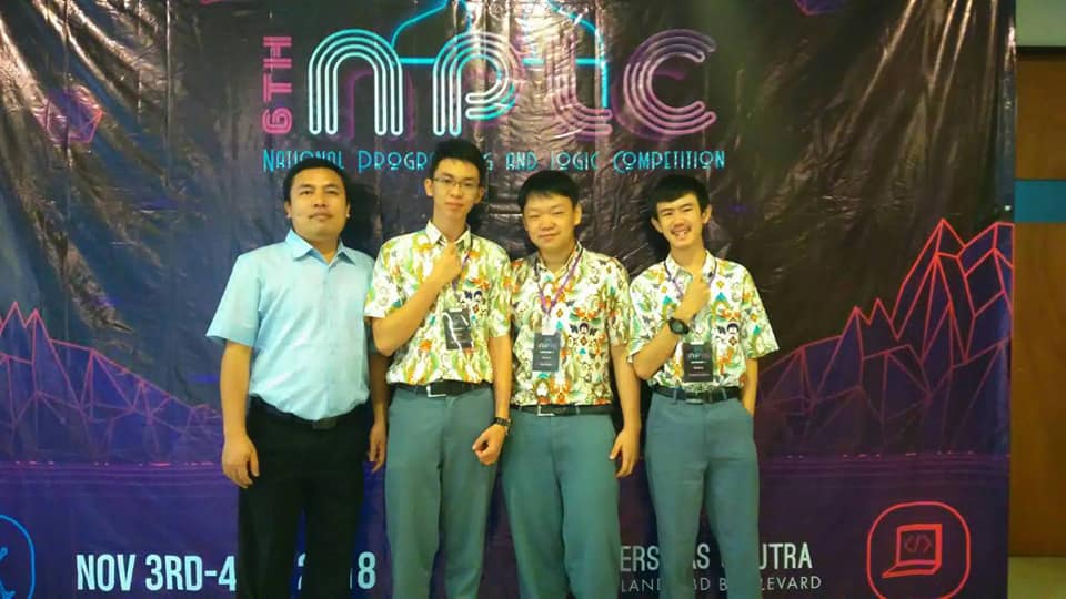 Tim Programming SMA Kristen Kalam Kudus Pematangsiantar (Vincentius Loanka Sinaga, Brian Wijaya, dan Sie Feng Yie Farrel) yang dibimbing oleh Bapak Juniandi Damanik, S.Kom berhasil meraih juara 3 dalam lomba NPLC (National Programming and Logic Competition) yang diadakan di Universitas Ciputra, Surabaya.