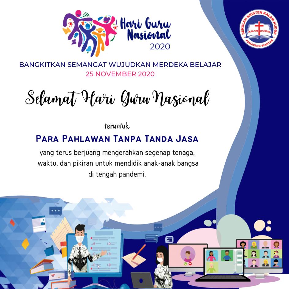 Tanggal 25 November diperingati menjadi Hari Guru Nasional untuk memberikan apresiasi kepada para pahlawan tanpa tanda jasa. Tema Hari Guru Nasional (HGN) tahun 2020 yakni “Bangkitkan Semangat, Wujudkan Merdeka Belajar” menggambarkan seluruh komponen pendidikan mulai dari pendidik, tenaga pendidik, siswa, dan orang tua harus bersatu dengan semangat mewujudkan...