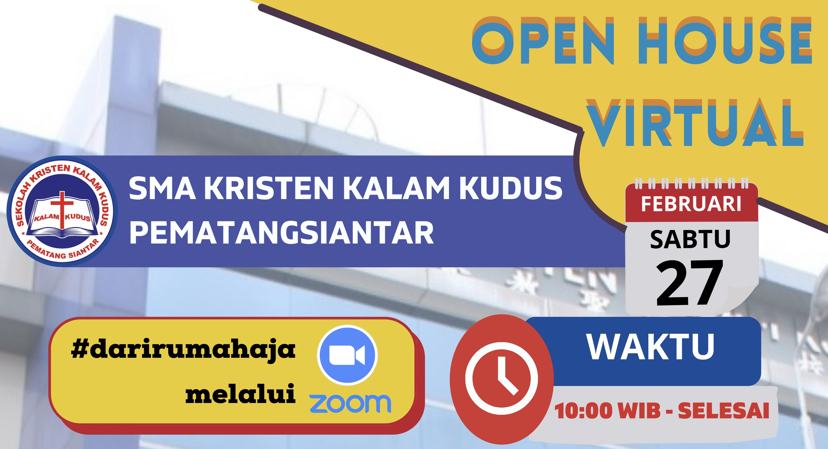 Puji Tuhan, Open House Virtual SMA Kristen Kalam Kudus Pematangsiantar telah sukses terlaksana pada tanggal 27 Februari 2021 pukul 10:00-12:30 WIB. Terima kasih kepada orangtua dan siswa kelas 9 SMP Kristen Kalam Kudus Pematangsiantar yang sangat antusias mengikuti acara tersebut. Tujuan diadakannya event ini, agar adik-adik SMP Kristen Kalam Kudus Pematangsiantar untuk mengen...