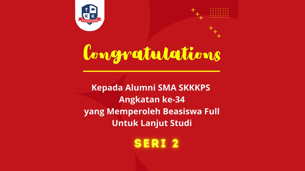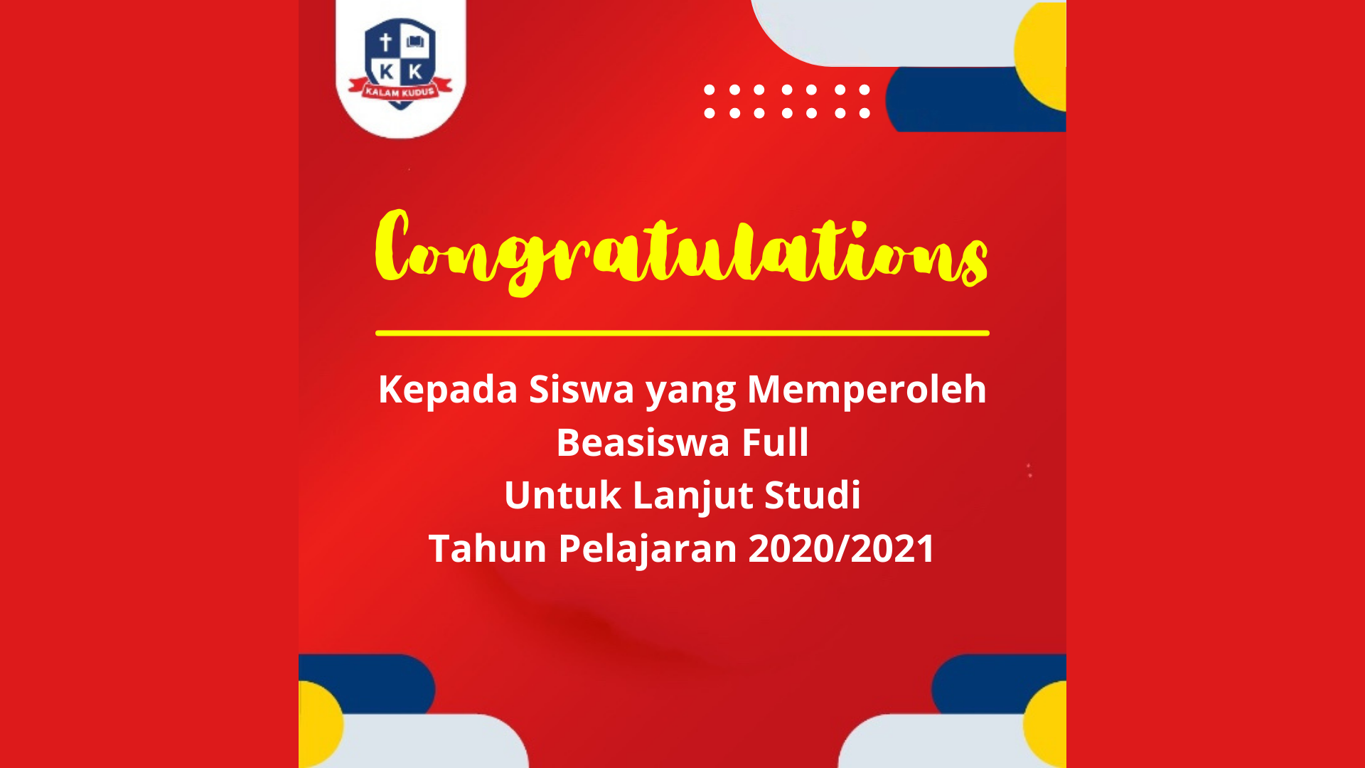 Badan Pengurus Yayasan Kalam Kudus Indonesia Cabang Pematangsiantar, Direktur Pelaksana, Kepala Sekolah, Guru-Guru, Pegawai dan Karyawan mengucapkan selamat dan sukses kepada siswa SMA Kristen Kalam Kudus Pematangsiantar yang memperoleh beasiswa full untuk lanjut studi. Mari jadikan momentum ini menjadi gerbang awal untuk memperkaya pengetahuan, keterampilan dan kemampuan...