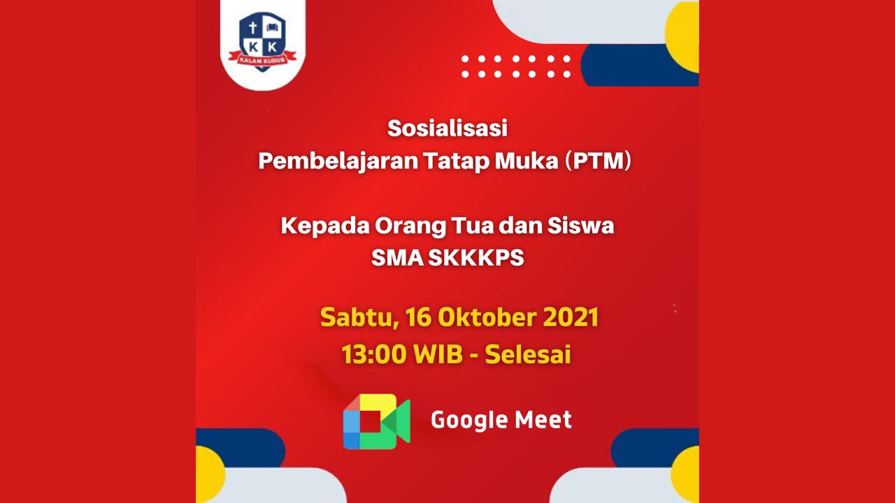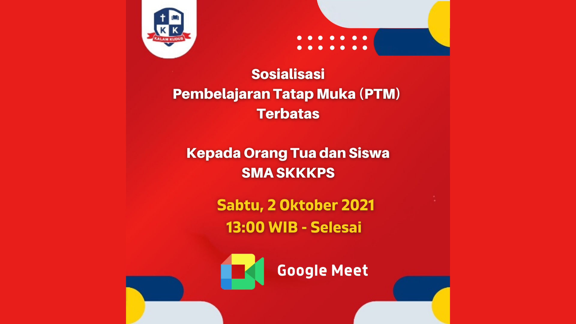 SMA Kristen Kalam Kudus Pematangsiantar mensosialisasikan Pembelajaran Tatap Muka (PTM) kepada orang tua dan siswa secara virtual melalui G-Meet pada hari Sabtu, 16 Oktober 2021. Kegiatan sosialisasi dibuka dalam doa oleh Ibu Dra. Santi Farida sebagai moderator. Penyampaian materi Pembelajaran Tatap Muka yang aman dan menyenangkan oleh Ibu Paulin...