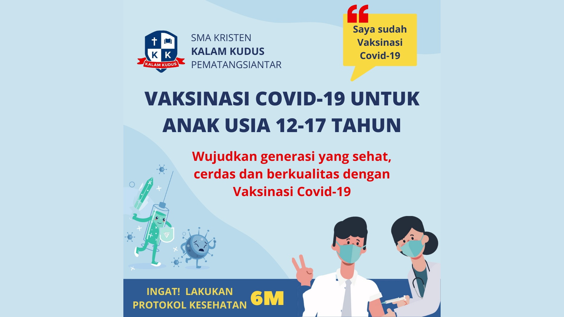 SMA Kristen Kalam Kudus Pematangsiantar bekerjasama dengan Puskesmas Karo telah menggelar vaksinasi Covid-19 kepada siswa pada Senin-Selasa, 11-12 Oktober 2021. Adapun tujuan siswa divaksinasi COVID-19 antara lain :1. Mewujudkan generasi yang sehat, cerdas dan berkualitas; 2. Membentuk kekebalan tubuh siswa untuk persiapan mengikuti Pembelajaran Tatap Muka (PTM) di sekolah; &n...