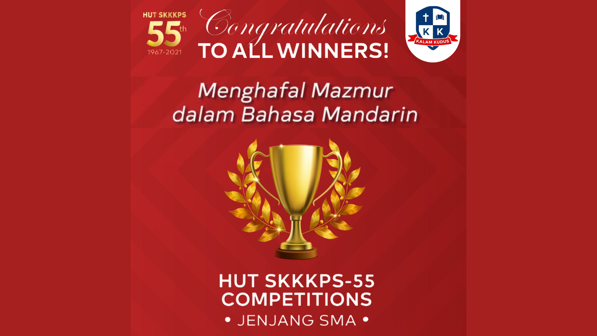 Selamat kepada sang juara “Menghafal Mazmur dalam Bahasa Mandarin” dalam rangka HUT ke-55 SKKKPS. Semoga prestasi ini bisa menginspirasi siswa/i lainnya untuk meraih prestasi di tengah pandemi dan memuliakan Tuhan. Kalam Kudus is the best. Soli Deo Gloria.