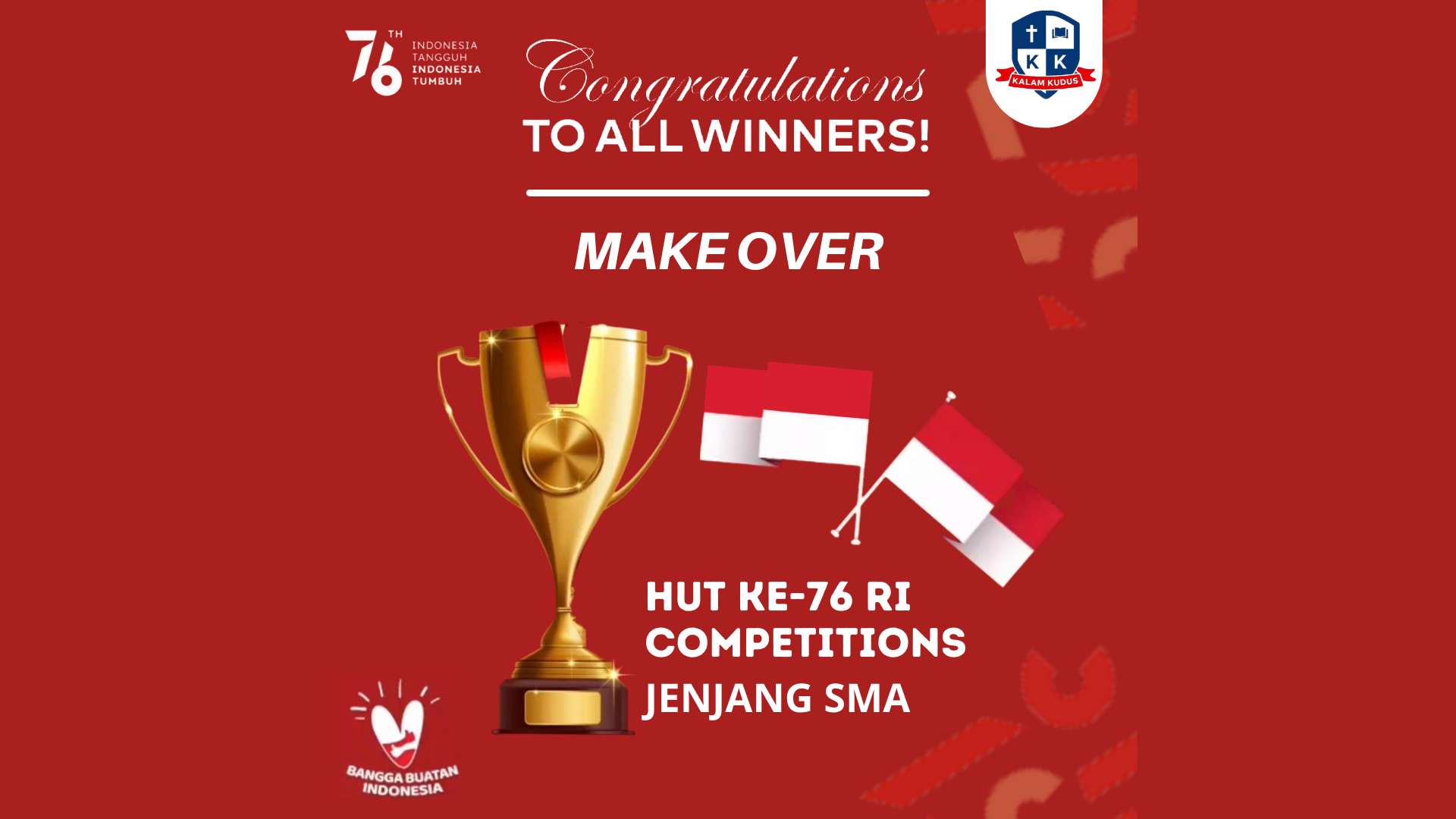 Selamat kepada sang juara “Make Over” dalam rangka HUT ke-76 RI di SMA SKKKPS. Semoga prestasi ini bisa menginspirasi siswa/i lainnya untuk meraih prestasi di tengah pandemi dan memuliakan Tuhan. Kalam Kudus is the best. Soli Deo Gloria.