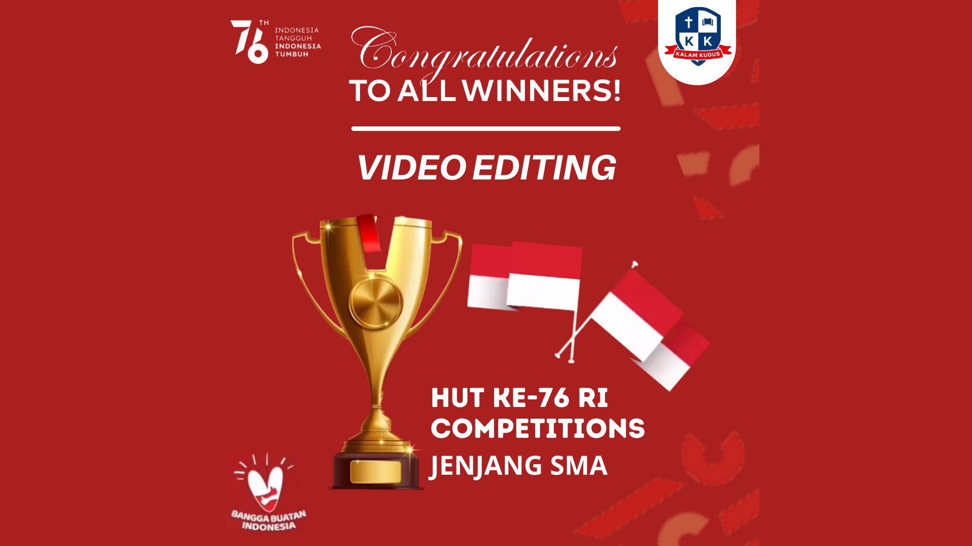 Selamat kepada sang juara “Video Editing” dalam rangka HUT ke-76 RI di SMA SKKKPS. Semoga prestasi ini bisa menginspirasi siswa/i lainnya untuk meraih prestasi di tengah pandemi dan memuliakan Tuhan. Kalam Kudus is the best. Soli Deo Gloria.