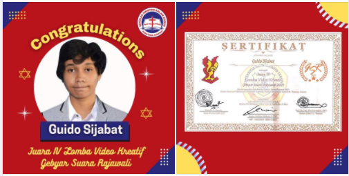 Puji Tuhan atas rahmat-Nya siswa SMA Kristen Kalam Kudus Pematangsiantar (GUIDO SIJABAT) meraih JUARA IV Lomba Video Kreatif pada Gebyar Suara Rajawali tahun 2021 yang diselenggarakan oleh Badan Eksekutif Mahasiswa 2020/2021 Fakultas Filsafat-Universitas Katolik St. Thomas, Medan. Semoga prestasi ini bisa menginspirasi siswa/i lainnya untuk meraih prestasi di tengah pandemi serta men...